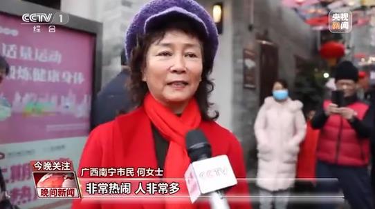 廣西南寧市民 何女士:非常熱鬧,人非常多,非常有節(jié)日氣氛。你看這個傘就比較獨特,我還沒見過,非常漂亮,一看見就想在這兒留個影。三街兩巷就是我們南寧的一個縮影。