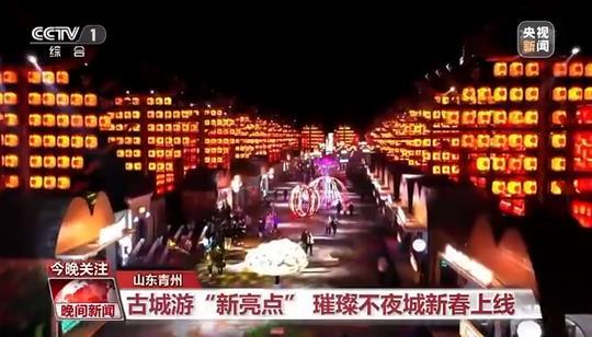在山東青州,當(dāng)?shù)匕压懦堑臍v史風(fēng)韻與現(xiàn)代燈光相融合,打造出一個不夜城。游客置身其中,賞花燈,看表演,在傳統(tǒng)文化中迎接新春的到來。