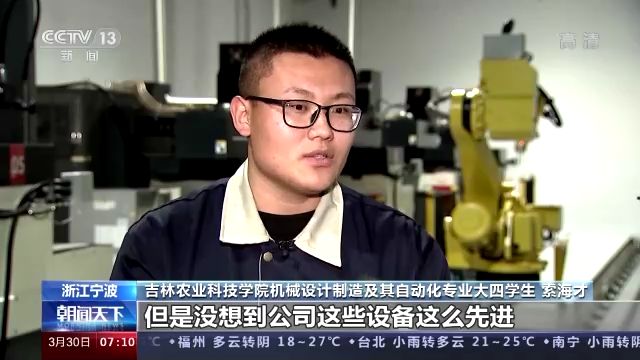 吉林農(nóng)業(yè)科技學(xué)院機械設(shè)計制造及其自動化專業(yè)大學(xué)生 索海才:我之前在學(xué)校也見過一些設(shè)備,但是沒想到公司這些設(shè)備這么先進。以前有一種坐井觀天的感覺,到這邊增長了自己的見識。
