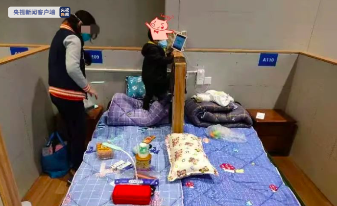 方艙醫(yī)院里的隔離病床原本是一人一床保持距離,鑒于前來入住的感染者中,有媽媽帶著年幼的孩子。在陌生的環(huán)境里,孩子夜晚入睡會產(chǎn)生不安的情緒。于是,護(hù)士們在一個隔間內(nèi),將兩張單人床合并,組合成一個“親子大床”,夜晚媽媽可以拉著孩子的手入睡。