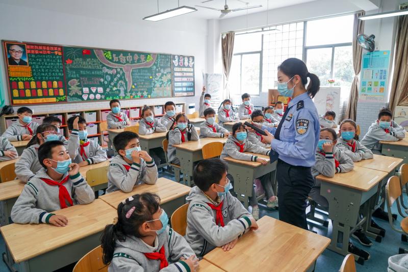 4月14日,南京市公安局建鄴分局沙洲派出所民警王舒馨在轄區(qū)內(nèi)一所小學(xué)為同學(xué)們進(jìn)行國家安全教育宣傳活動。