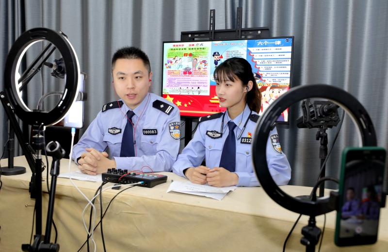 4月14日,安徽省安慶市公安局迎江分局大南門派出所民警通過網(wǎng)絡(luò)直播向居民講解國家安全相關(guān)知識。