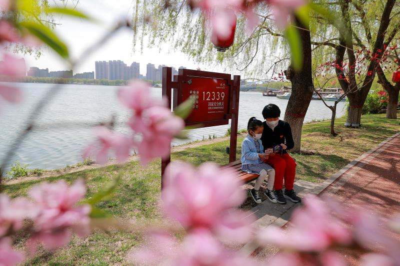4月14日,在河北省固安縣人民廣場宣傳點(diǎn),工作人員向群眾發(fā)放相關(guān)知識手冊。