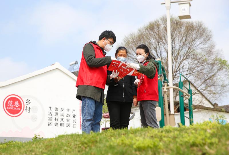 4月14日,在江蘇鎮(zhèn)江句容市下蜀鎮(zhèn)空青村范巷自然村,志愿者向村民講解國家安全相關(guān)知識。