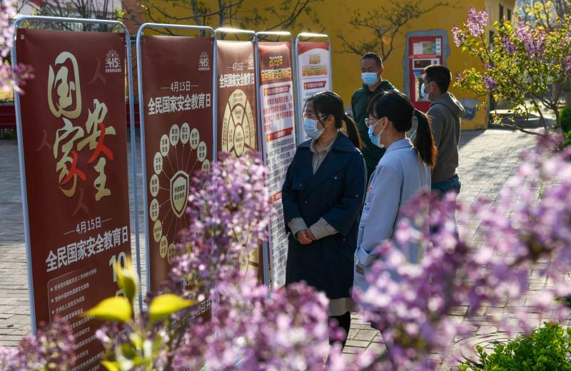 4月14日,居民在河北省遵化市西三里鎮(zhèn)一社區(qū)觀看國家安全相關(guān)知識展覽。