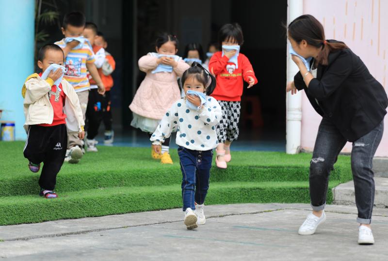 4月14日,貴州省從江縣剛邊鄉(xiāng)中心幼兒園的小朋友們在老師的組織下進(jìn)行應(yīng)急避險演練。
