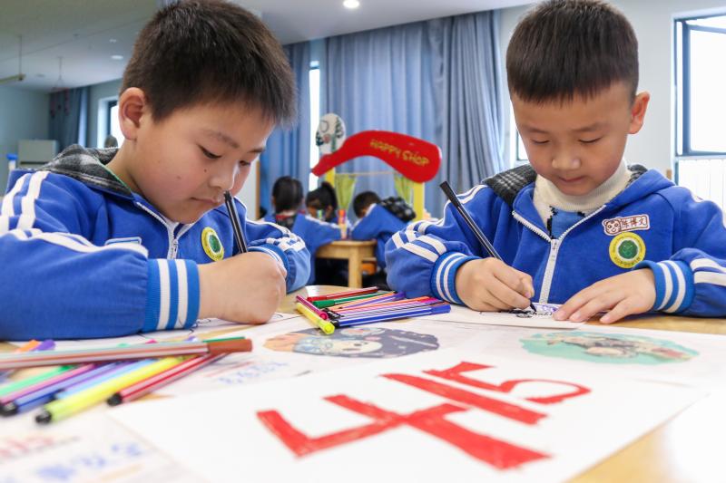 4月14日,浙江省湖州市長興縣水口鄉(xiāng)中心幼兒園的孩子們創(chuàng)作國家安全教育主題繪畫。