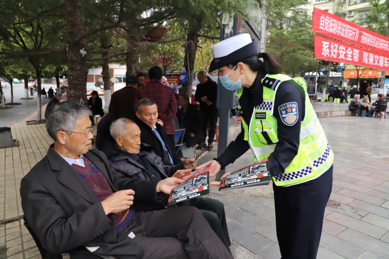 4月14日,在貴州省赤水市,民警向市民講解國家安全相關(guān)知識。