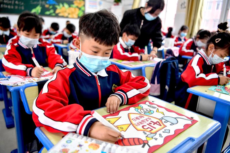 4月14日,在安徽省亳州市風(fēng)華桐鄉(xiāng)路小學(xué),學(xué)生參加“全民國家安全教育日”主題繪畫活動。