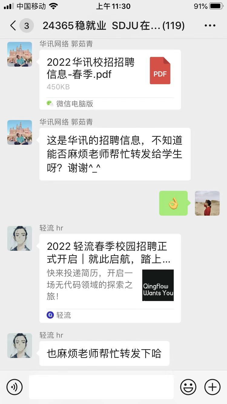 這些集團(tuán)公司及其下屬企業(yè)反響積極,紛紛在群內(nèi)接起了長龍,分別發(fā)布各自的崗位需求:“建筑學(xué)、大土木、工程管理類,工作地點(diǎn)為江浙滬”“專業(yè)不限(重點(diǎn)專業(yè):車輛/機(jī)械/計(jì)算機(jī)/軟件),工作地點(diǎn)為上海、南京等地 ”“土木工程、城市規(guī)劃、人力資源,工作地點(diǎn)為全國 ”……學(xué)校就業(yè)指導(dǎo)中心老師隨即將這些崗位需求信息轉(zhuǎn)發(fā)到同濟(jì)就業(yè)交流群、2022屆畢業(yè)生就業(yè)聯(lián)絡(luò)人工作群:“請相關(guān)專業(yè)學(xué)院老師們將這些信息傳遞給每一位尚未落實(shí)就業(yè)去向的畢業(yè)生,請有意向的畢業(yè)生提供簡歷!备鲗W(xué)院快速反應(yīng),在收到學(xué)院發(fā)來的畢業(yè)生簡歷后,就業(yè)指導(dǎo)中心老師將簡歷發(fā)到相關(guān)企業(yè)的“簡歷直推群”。很快,企業(yè)就同中意的畢業(yè)生直接聯(lián)系、溝通!昂啔v直推”活動啟動實(shí)施一周來,已涵蓋60余家單位的200余個崗位,覆蓋全校各專業(yè),目前已推薦學(xué)生近百人次。
