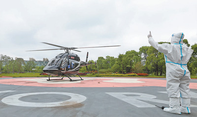 4月24日,一架運送2萬管核酸檢測樣本的直升機從上海松江區(qū)飛往安徽滁州市。