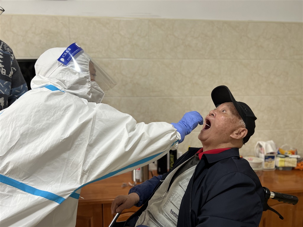 據(jù)了解,每天的三次院區(qū)全面消殺、老人用品消毒擦洗,兩次體溫監(jiān)測一樣不落,核酸采樣也是必須。“前期,核酸采樣由外來醫(yī)護人員完成。后來,考慮到老人接觸外來醫(yī)護人員的風(fēng)險問題,我們決定自行進行核酸!背赡燃t介紹,“工具都是專門的核酸檢測機構(gòu)送上門的,我們照例消毒三次。至于操作,我們是看視頻學(xué)習(xí)的!