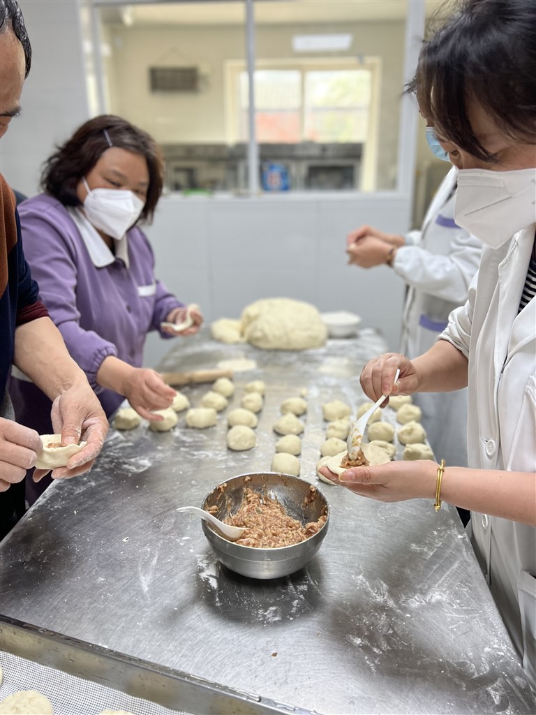 封閉式管理以來,受條件限制,敬老院餐食單一了許多,“敬老院有專門的食材供應(yīng)商,一開始他們過不來,上海潤靜果蔬專業(yè)合作社就捐了一批給我們。后來供應(yīng)商把通行證辦下來了,一周來一次,送的都是放得起的、不容易壞的!背赡燃t無奈道,“后來我就尋思著能不能改善一下。正好,我們中間有人有點小手藝在身上,會包包子。我就讓供應(yīng)商捎上兩包面粉!4月21日,工作人員包了好幾屜包子,讓老人的早飯不再是單調(diào)的粥和醬菜。
