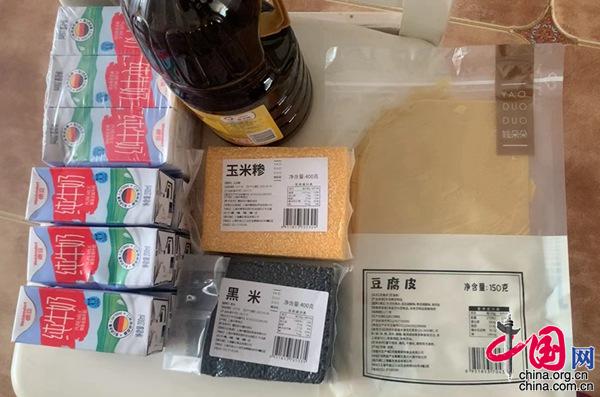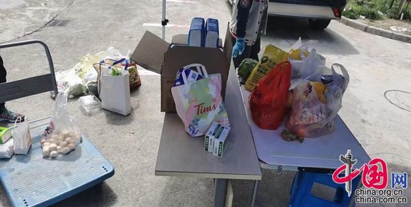 圖片說(shuō)明:崔女士所在小區(qū)收到的政府發(fā)放物資。(圖片由受訪者提供)