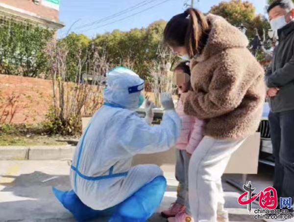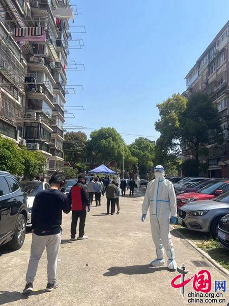 圖片說(shuō)明:來(lái)自江蘇的援滬醫(yī)務(wù)人員在為小區(qū)居民做核酸。(圖片由受訪者提供)