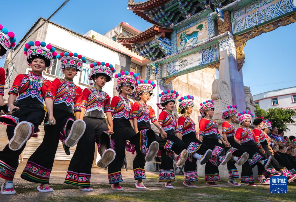 當日,被譽為“彝族左腳舞之鄉(xiāng)”的云南省楚雄彝族自治州牟定縣迎來當?shù)貍鹘y(tǒng)民族節(jié)日“三月會”,各族群眾歡度盛會,共跳傳承千年的彝族左腳舞。