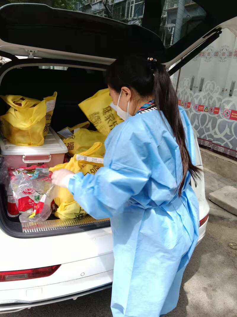 杜娟給封控社區(qū)送貨。(受訪者供圖)