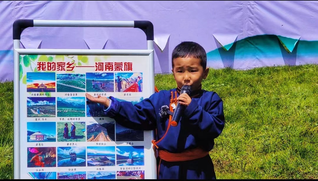 青海新聞網(wǎng)·大美青?蛻舳擞 (記者 李娜楊紅霞報道) “我的家鄉(xiāng)在中國西部,這里有一片非常美麗的大草原,大家都喜歡叫她‘河南蒙旗’,這里有藍天、白云、草原、牛羊、湖泊、河流……”來自黃南藏族自治州河南蒙古族自治縣中心幼兒園五歲半的觀卻東珠作為“講解員”,正聲情并茂的向老師、同學以及家長介紹自己的家鄉(xiāng)。