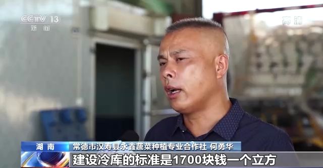 湖南省常德市漢壽縣永鑫蔬菜種植專業(yè)合作社 何勇華:建設(shè)冷庫的標(biāo)準(zhǔn)是1700塊錢一個立方,政府給我們的獎補是建設(shè)成本的30%。