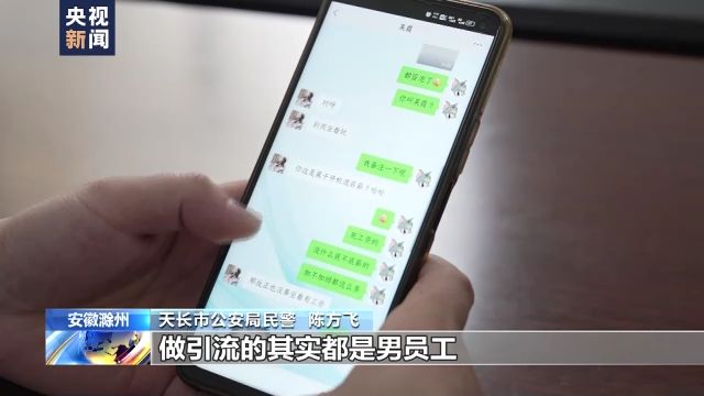 安徽省天長市公安局民警 陳方飛:他們這個犯罪團(tuán)伙里面有個崗位叫“引流”,做“引流”的其實(shí)都是男員工,在他們內(nèi)部也叫“運(yùn)營”。他們利用女主播的頭像去注冊社交賬號,也會發(fā)一些女主播的日常生活視頻在這個賬號上,然后在各個社交平臺上物色男性客戶,主動去搭訕,吸引他們的關(guān)注。