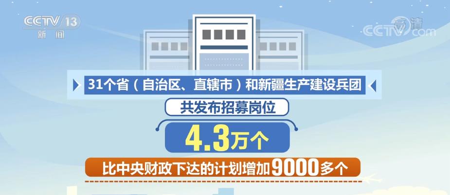 2022年高校畢業(yè)生“三支一扶”計(jì)劃招募工作已基本完成,31個(gè)。ㄗ灾螀^(qū)、直轄市)和新疆生產(chǎn)建設(shè)兵團(tuán)共發(fā)布招募崗位4.3萬個(gè),比中央財(cái)政下達(dá)的計(jì)劃增加9000多個(gè)。