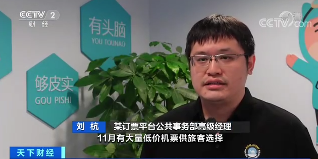 某訂票平臺(tái)公共事務(wù)部高級(jí)經(jīng)理 劉杭:11月有大量低價(jià)機(jī)票供旅客選擇,裸票價(jià)格低于200元。