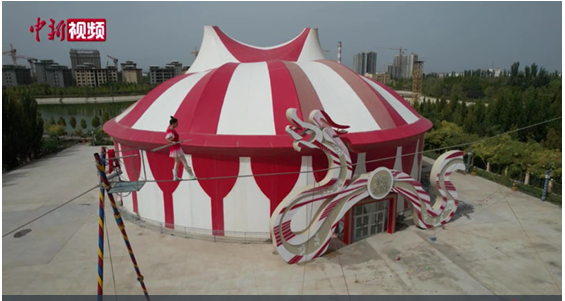 一條鋼絲被固定在高空上,艾比比古麗·馬力克穿著高跟鞋,從鋼絲一端走向另一端。艾比比古麗·馬力克表演的是維吾爾族傳統(tǒng)雜技藝術(shù)“達(dá)瓦孜”(意為“高空走繩”)。她能在麻繩上快走、劈叉等,她最引以為傲的是掌握了“芭蕾走麻繩”。艾比比古麗·馬力克每天還在堅持刻苦訓(xùn)練,不僅為了自己,也是為了更好地將“達(dá)瓦孜”傳承下去。
