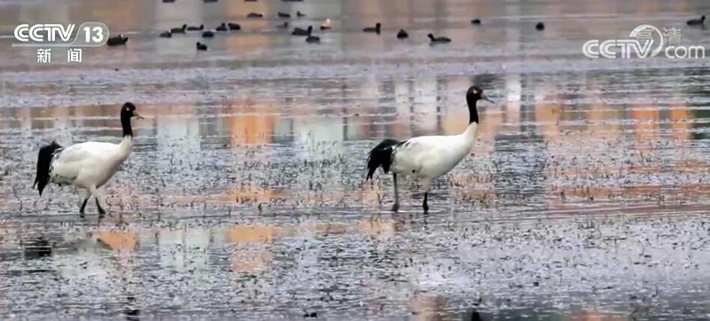大批候鳥(niǎo)飛抵瀘沽湖越冬 國(guó)家一級(jí)保護(hù)動(dòng)物黑頸鶴現(xiàn)身