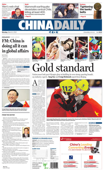 改版后的《中國日報(bào)》以“解讀中國,點(diǎn)評(píng)世界”為報(bào)道主題,將打造與中國國際地位相稱的世界一流英文媒體作為目標(biāo)。旗下的《中國日報(bào)(美國版)》和《中國日報(bào)(香港版)》將一同改版。中國日報(bào)總編輯朱靈表示,日益繁榮昌盛的中國正吸引著越來越多的國際關(guān)注,即將召開的2010年中國“兩會(huì)”尤其為世人所矚目。作為被外媒轉(zhuǎn)引最多的中國報(bào)紙,《中國日報(bào)》在“兩會(huì)”召開前夕全面改版,并成立了歷史上規(guī)模最大的報(bào)道組采訪報(bào)道“兩會(huì)”,就是要借此時(shí)機(jī)更加全面、客觀地回應(yīng)海外受眾關(guān)切,更好地向世界說明中國。
