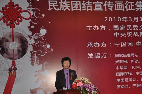 為貫徹落實(shí)中共中央辦公廳、國務(wù)院辦公廳《關(guān)于深入開展民族團(tuán)結(jié)宣傳教育活動(dòng)的意見》精神,向社會(huì)提供主題鮮明、健康向上、反映時(shí)代風(fēng)貌、準(zhǔn)確權(quán)威的民族團(tuán)結(jié)宣傳品,展示我國各民族共同團(tuán)結(jié)奮斗、共同繁榮發(fā)展的時(shí)代風(fēng)貌,由國家民委文化宣傳司、中央統(tǒng)戰(zhàn)部民族宗教局主辦,中宣部宣教局支持,中國網(wǎng)中國民族頻道承辦,國家民委網(wǎng)站、中國民族宗教網(wǎng)、人民網(wǎng)、中新網(wǎng)、中國網(wǎng),光明網(wǎng)、中國文明網(wǎng)、中華網(wǎng)、TOM、中國經(jīng)濟(jì)網(wǎng)、國際在線、中青在線、中青網(wǎng),央視網(wǎng)、中國廣播網(wǎng)、鳳凰網(wǎng)、中國經(jīng)濟(jì)新聞網(wǎng)、網(wǎng)易、新浪網(wǎng)、騰訊、搜狐、千龍網(wǎng)、優(yōu)酷網(wǎng)、酷六網(wǎng)、貓撲網(wǎng),激動(dòng)網(wǎng)、中工網(wǎng)、天涯社區(qū)、環(huán)球網(wǎng)、中國日?qǐng)?bào)網(wǎng)、和訊網(wǎng),中國企業(yè)新聞網(wǎng),北青網(wǎng)等共同發(fā)起宣傳的民族團(tuán)結(jié)宣傳畫征集活動(dòng)新聞發(fā)布會(huì)于2010年3月19日下午在北京國家民族事務(wù)委員會(huì)舉行,國家民委副主任丹珠昂奔及國家民委、中央宣傳部、中央統(tǒng)戰(zhàn)部有關(guān)部門的同志出席了新聞發(fā)布會(huì)。
