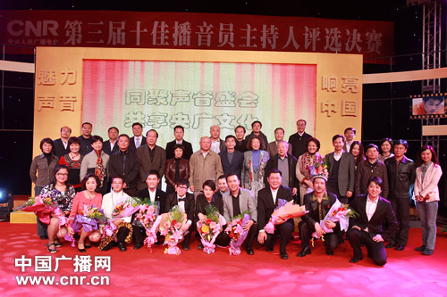 中央臺(tái)第三屆十佳播音員主持人與臺(tái)領(lǐng)導(dǎo)、評(píng)委合影(攝影:中廣網(wǎng)涂傲)