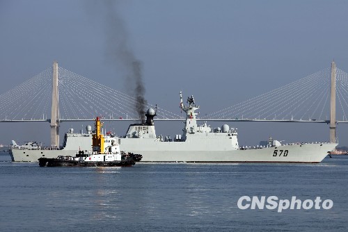 8月21日,中國海軍赴亞丁灣、索馬里海域執(zhí)行護航任務的第二批艦艇編隊“深圳”號導彈驅逐艦、“黃山”號導彈護衛(wèi)艦、“微山湖”號綜合補給艦及800余護航將士凱旋歸來,圓滿完成護航任務后順利返回湛江某軍港。圖為“黃山”號導彈護衛(wèi)艦駛向軍港碼頭。 中新社發(fā) 孫自法 攝
