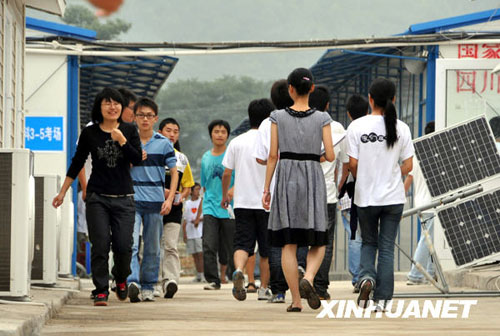2008年7月3日,在綿陽長虹培訓中心考點,北川中學和來自北川的其他高考學生參加高考。新華社發(fā)
