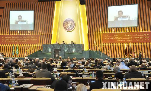 《聯(lián)合國反腐敗公約》第三次締約國會議在卡塔爾開幕。11月9日,與會者在卡塔爾首都多哈參加《聯(lián)合國反腐敗公約》第三次締約國會議。為期5天的《聯(lián)合國反腐敗公約》第三次締約國會議9日在卡塔爾首都多哈開幕,來自公約締約國、簽署國及多個聯(lián)合國專門機(jī)構(gòu)和非政府組織的代表約1000人出席會議。 本屆會議將就建立一個審議各國履行《聯(lián)合國反腐敗公約》情況的機(jī)制進(jìn)行討論。同時,與會代表還將就如何追回被腐敗分子帶到境外的資產(chǎn)等問題進(jìn)行探討。新華社記者杜健攝