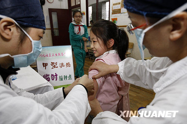 11月10日,上海虹口區(qū)第三中心小學(xué)的一名學(xué)生正在接種甲流疫苗。當(dāng)日,上海中小學(xué)生甲型H1N1流感疫苗接種工作全面展開,預(yù)計本月底前完成。按照衛(wèi)生部門規(guī)定的接種流程,各個學(xué),F(xiàn)場設(shè)置了候檢區(qū)、接種區(qū)和留觀區(qū)。學(xué)生需攜帶監(jiān)護人簽名的同意書,由學(xué)校醫(yī)護人員檢查身體狀況后,方可接種疫苗,學(xué)生接種后需留觀半小時,以確認(rèn)是否有異常反應(yīng)。新華社記者 裴鑫 攝