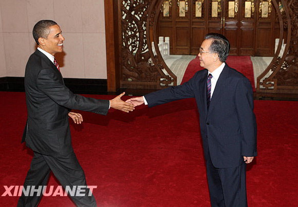 溫家寶首先對奧巴馬來訪表示歡迎,并認(rèn)為這次訪問的成果具有深遠(yuǎn)意義。