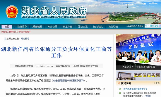 人民網(wǎng)北京12月8日電 據(jù)湖北省政府網(wǎng)站消息,新任湖北省副省長(zhǎng)張通分管環(huán)保、文化、工商等工作,其他省政府領(lǐng)導(dǎo)分管的工作也做了相應(yīng)調(diào)整。