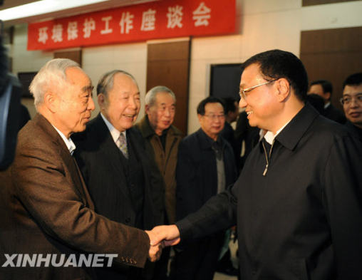 12月8日下午,中共中央政治局常委、國(guó)務(wù)院副總理李克強(qiáng)考察中國(guó)環(huán)境科學(xué)研究院和中國(guó)環(huán)境監(jiān)測(cè)總站,并主持召開環(huán)境保護(hù)工作座談會(huì)。這是李克強(qiáng)在出席環(huán)境保護(hù)工作座談會(huì)時(shí)與老科學(xué)家、老院士親切握手。新華社記者劉建生攝