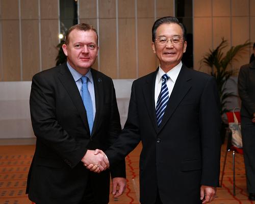 12月17日,中國國務(wù)院總理溫家寶在哥本哈根會(huì)見丹麥?zhǔn)紫嗬鼓律P氯A社記者 龐興雷 攝