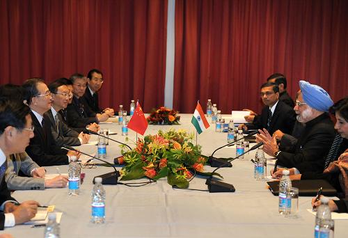 12月18日,中國國務(wù)院總理溫家寶在哥本哈根會(huì)見印度總理辛格。新華社記者 劉建生 攝