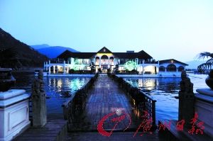 記者留意到,整個(gè)建筑多用實(shí)木構(gòu)建成,除花草字畫(huà)外,多處還陳列著各式各樣的古董收藏。郭奎章介紹,整個(gè)建筑約有7000平方米,共有4間客房,電纜、電視都由水下鋪設(shè)管道,從岸上引來(lái)!鞍ㄕ麄(gè)建筑的給排水,我們都從海水下面的管道連接到市政管道里,不會(huì)產(chǎn)生對(duì)海域的污染!