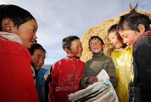 1月18日,西藏達(dá)孜縣幫堆鄉(xiāng)幾個(gè)孩子在一起復(fù)習(xí)功課。據(jù)了解,2009年,西藏第8次提高了旨在幫助農(nóng)牧區(qū)貧困中小學(xué)生接受教育的“三包”經(jīng)費(fèi)標(biāo)準(zhǔn),年生均達(dá)到1800元,受益學(xué)生27萬(wàn)人。為加快發(fā)展西藏教育事業(yè),國(guó)家從1985年起在西藏農(nóng)牧區(qū)中小學(xué)開始實(shí)施“三包”和助學(xué)金制度。根據(jù)規(guī)定,對(duì)農(nóng)牧民子女住校生包吃、包住、包學(xué)習(xí)費(fèi)用,對(duì)優(yōu)秀學(xué)生發(fā)放獎(jiǎng)學(xué)金,對(duì)普通高中農(nóng)牧民子女住校和義務(wù)教育階段學(xué)校農(nóng)牧民子女走讀發(fā)放助學(xué)金。新華社記者 覺果 攝