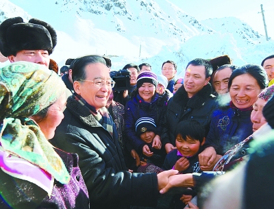 溫家寶總理一直關(guān)心著新疆的發(fā)展和民生的改善。這次北疆的雪災(zāi),更牽動(dòng)著他的心,他說(shuō):“我惦念著災(zāi)區(qū)的各族群眾,一定要去看看,群眾生產(chǎn)生活安置好了才安心。”