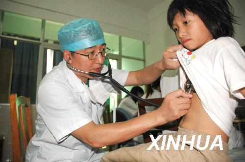 資料圖片:2008年10月10日,一名患病兒童在進(jìn)行手術(shù)前體檢。當(dāng)日,廣州啟動(dòng)“愛(ài)心救助,托起希望”救治百名特困家庭重癥兒童行動(dòng),由廣州福利彩票公益金籌集300萬(wàn)元資金,資助100名低保、低收入困難家庭中患重癥病的兒童進(jìn)行救治!⌒氯A社記者賴(lài)少芬攝