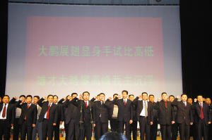 21日,武隆縣100多名縣級、鄉(xiāng)鎮(zhèn)、部門“一把手”依次走上主席臺,面向800名干部代表和電視機(jī)前的幾十萬武隆市民宣誓:完成縣委縣政府下達(dá)的各項重點任務(wù),“如果完不成,主動辭職!
