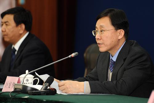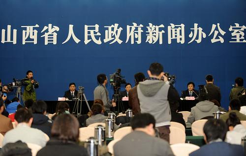 3月22日,山西省政府副秘書長巨憲華(右)在新聞發(fā)布會上通報情況。 新華社記者 燕雁 攝