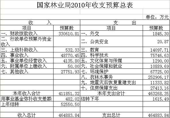 國(guó)家林業(yè)局2010年收支預(yù)算總表