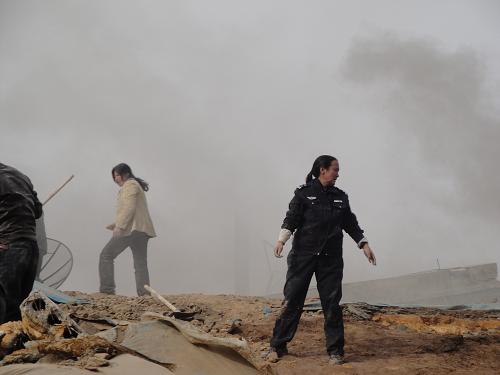 4月14日,玉樹(shù)縣結(jié)古鎮(zhèn)警察和群眾在地震發(fā)生后的第一時(shí)間搜救傷員。新華社發(fā)(張紅栓 攝)