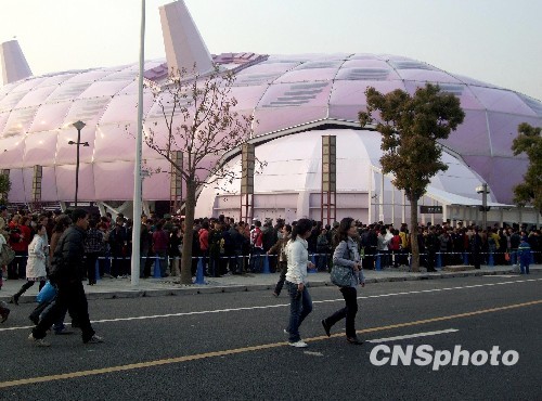 4月23日,上海世博會(huì)迎來(lái)第三場(chǎng)試運(yùn)營(yíng),首次參與的日本館成為當(dāng)日最受熱捧的世博場(chǎng)館之一,原定于下午3時(shí)正式開館,中午12時(shí)就陸續(xù)有游客聚集,他們?cè)趫?chǎng)外大排長(zhǎng)龍,火爆程度令人嘆為觀止。 中新社發(fā) 鄭瑩瑩 攝