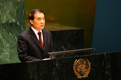 5月4日,中國代表團(tuán)團(tuán)長(zhǎng)、中國常駐聯(lián)合國代表李保東在美國紐約聯(lián)合國總部舉行的第八次《不擴(kuò)散核武器條約》審議大會(huì)上發(fā)言,表示有效防止核武器擴(kuò)散是實(shí)現(xiàn)全面禁止和徹底銷毀核武器的必要條件,需要各方共同付諸行動(dòng)。新華社記者 劉欣 攝